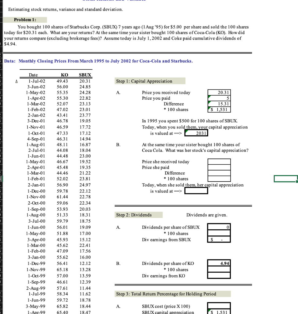 Estimating Stock Returns Variance And Standard Chegg Com